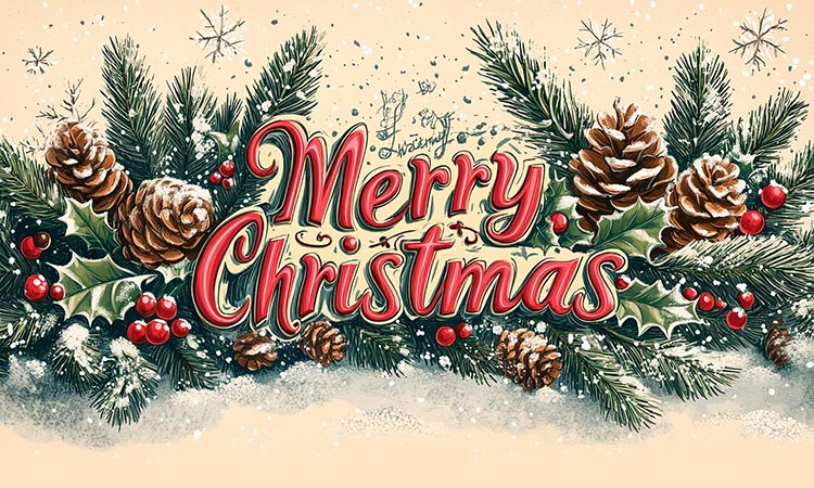 Celebrate the holiday season in traditional style with this vintage-inspired “Merry Christmas” design. Accented with pinecones, holly, red berries, and evergreen branches, this timeless background is perfect for heartfelt messages that spread warmth, joy, and classic charm.