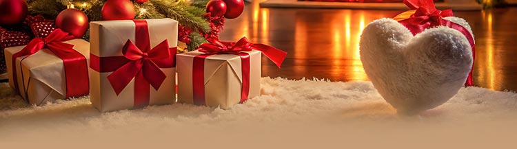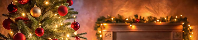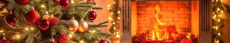 A cozy holiday scene featuring a beautifully decorated Christmas tree, glowing fireplace, and wrapped gifts with festive red ribbons. The soft candlelight and warm tones create a heartfelt atmosphere—perfect for Christmas greetings, love-filled messages, and joyful seasonal announcements.