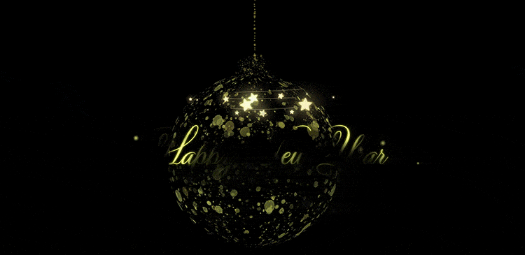 A sleek black-and-gold New Year design featuring a shimmering ornament surrounded by glowing stars and elegant “Happy New Year” lettering. This sophisticated background delivers a sense of celebration, luxury, and fresh beginnings—perfect for New Year greetings, corporate messages, and elegant year-end announcements.